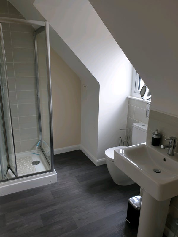 Large bright en-suite room to let in very quiet house. The rooms all have locks for which there 2 keys of which one is held by the tenant and one by the cleaner.