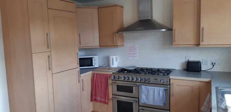 There is a communal kitchen diner in the house, equipped with an oven, fridge and separate fridge freezer, microwave oven, kettle and toaster.