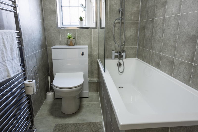 The bathroom is a good size with a power shower, bathroom tub, clean and tidy.