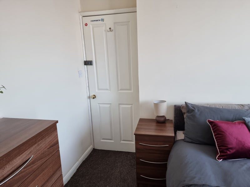 Fully furnished with double bed and lots of storage cupboard space, two chest of drawers and bedside table.