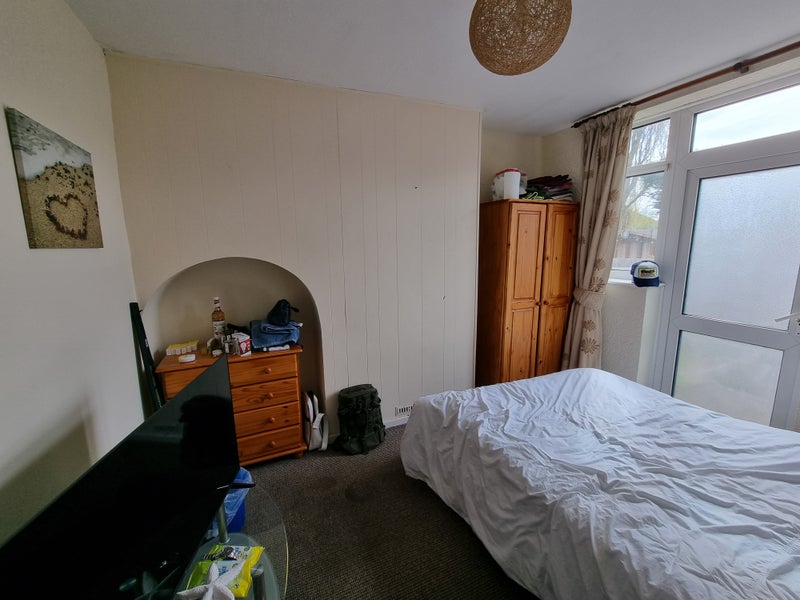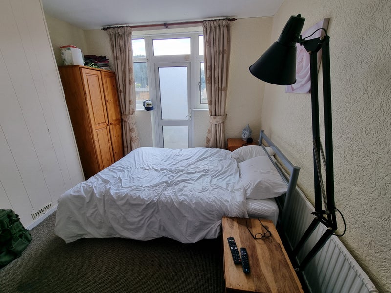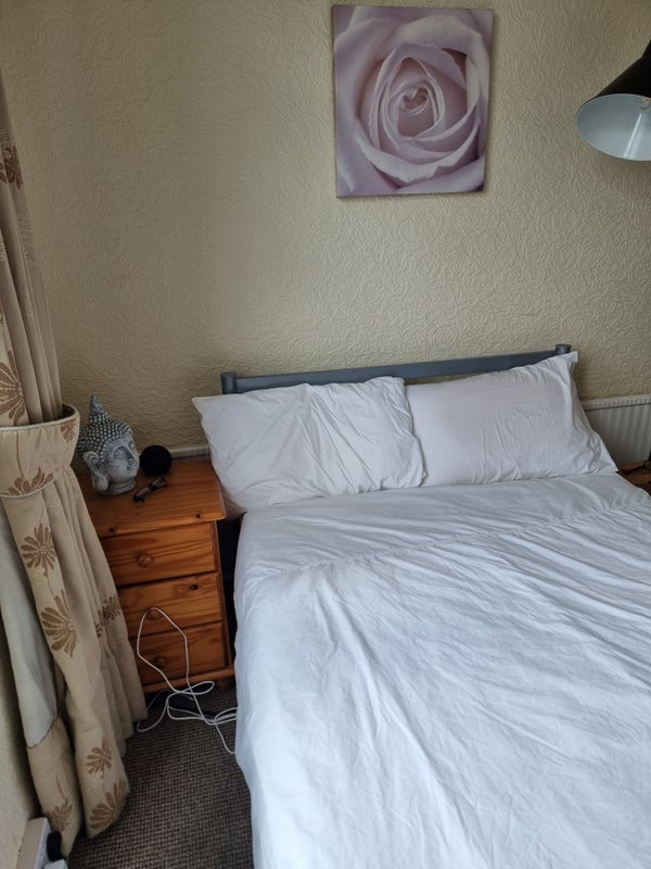 Large comfortable double bedroom in a shared house on a quiet residential street in Duston. The bedroom is furnished with a double bed, double wardrobe, bedside table and chest of drawers. Your fellow housemates are working professionals.