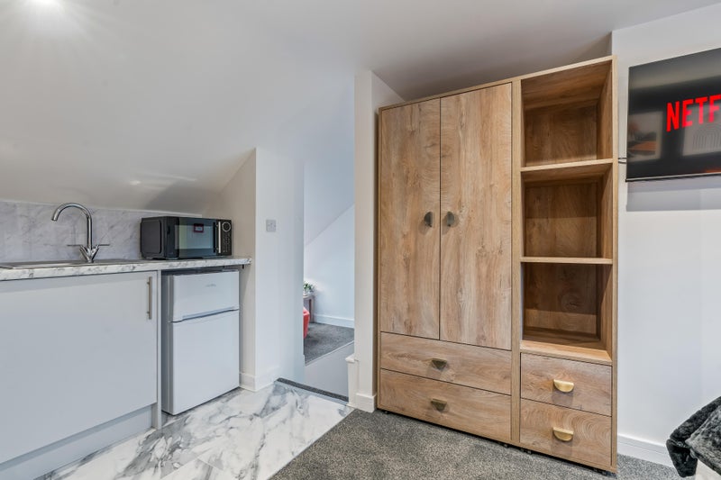 Having been finished to an exceptional standard by the owner, each room is fully furnished with furniture including bed, wardrobe, mirror, desk & ergonomic chairs in each room - the perfect set up for working from home with notice boards provided also! The private en-suite shower room is newly fitted and includes a low-level W. C. & vanity wash basin. To complete the room, the owner has provided a wall mounted smart TV for convenience and entertainment purposes & independent use of a mini fridge freezer provided - an added benefit!
