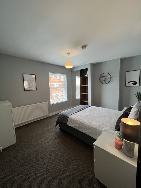 * The room comes fully furnished, including a double bed, double wardrobe, chest of drawers, desk, chair, and bedside cabinet.