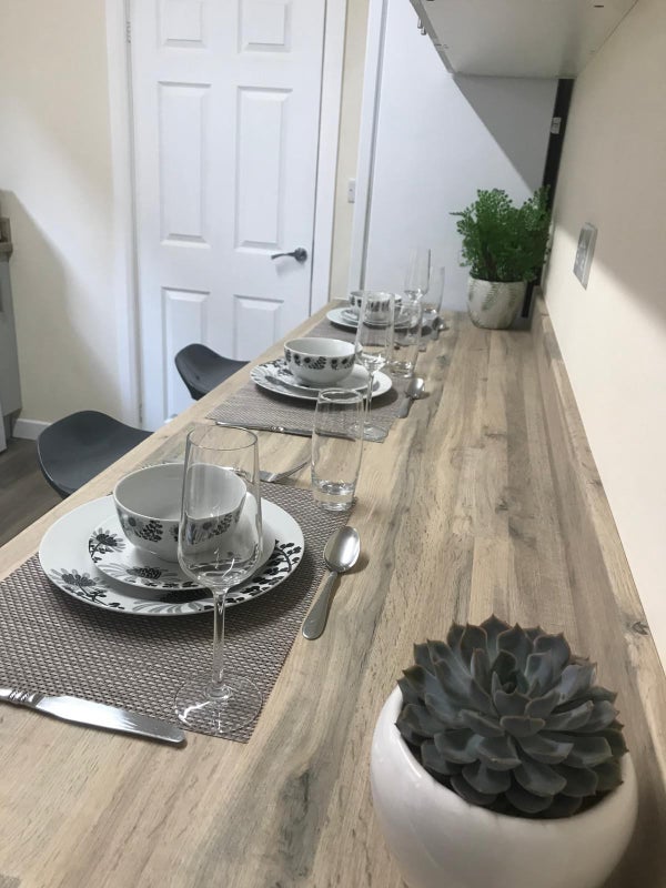 Although there is no separate shared living room but the kitchen is a good size with a seating capacity.