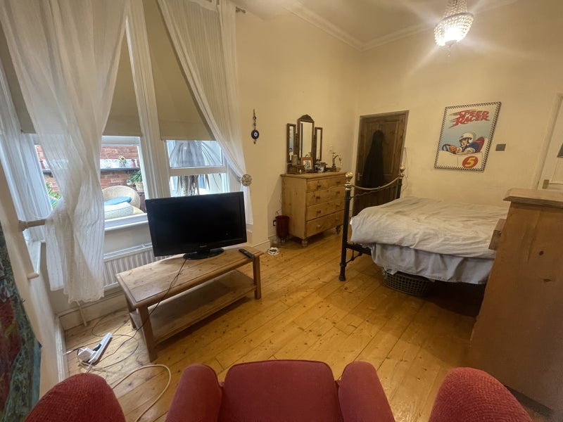 The room comes well furnished, double bed, Comfy chair, coffee TV table and storage.