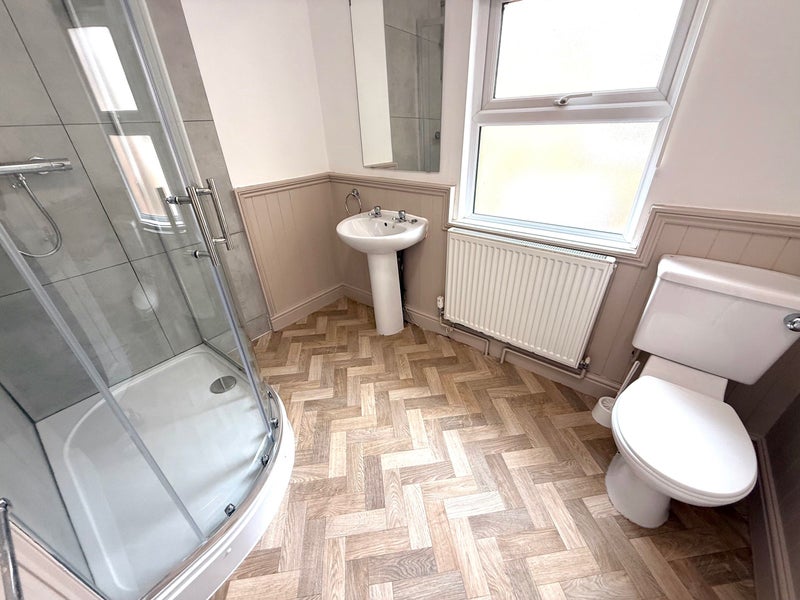 The entire house is newly refurbished, with a new fitted kitchen which includes a built in fridge and freezer. 2 x washing machines, new flooring throughout. Each room includes a new double bed, new double mattress, new mattress protector. Depending on room size, furniture may also include: wardrobe, chest of drawers and bedside table. Each room has new blackout roller blinds. A secure key lockbox is fitted outside the front door and outside every bedroom. The house has one upstairs bathroom with a toilet, sink and shower and one downstairs loo with toilet and sink.