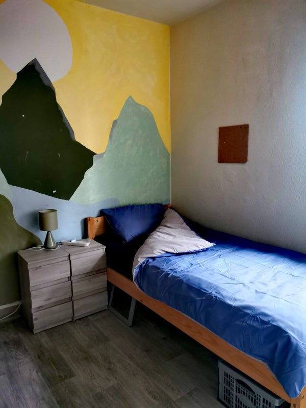 Upstairs room, shared bathroom with bath and shower, shared kitchen and fridge, electric cooker. Shared front room with sofa and dining table. No TV licence but you can purchase if you want to watch TV, street parking, big garden with patio. 2 chihuahuas and a cat in house. Friendly neighbourhood and quiet cul-de-sac. Local shops 5 mins walk. Buses 2-5 mins walk.