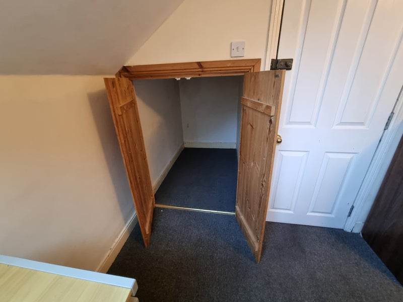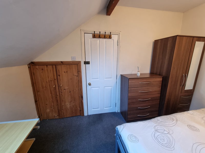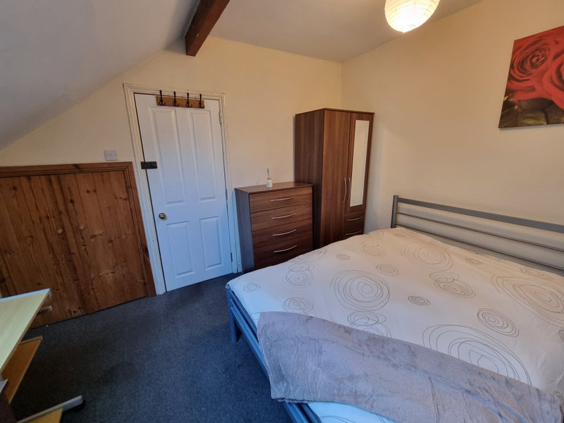 Fully furnished with windows in the eaves, east facing to take advantage of the morning sun. The room comes furnished with a double bed, a mirrored wardrobes and additional chest of drawers and bedside table and a huge storage cupboard.