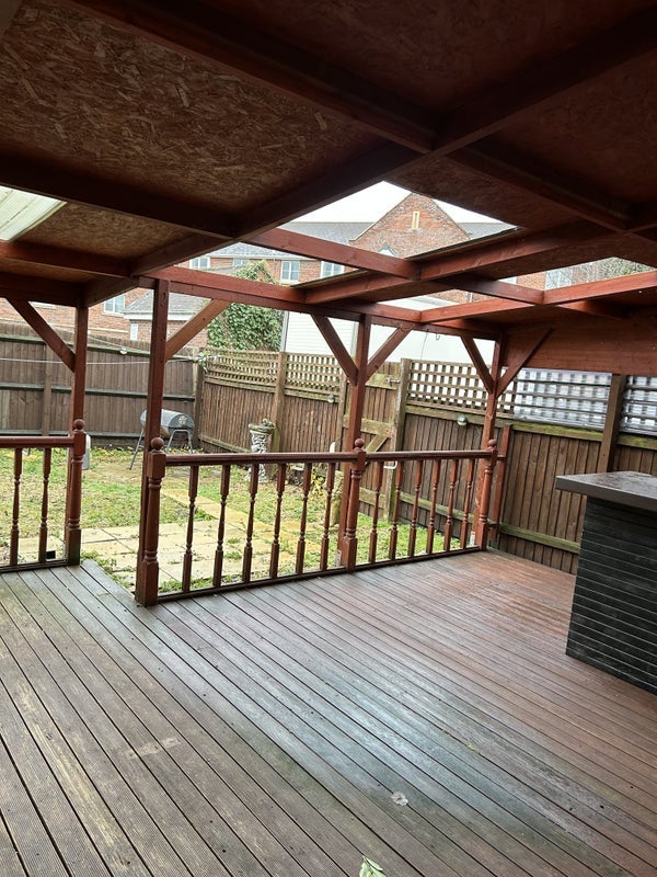 Three‑storey townhouse with plenty of outdoor space and a covered deck area.