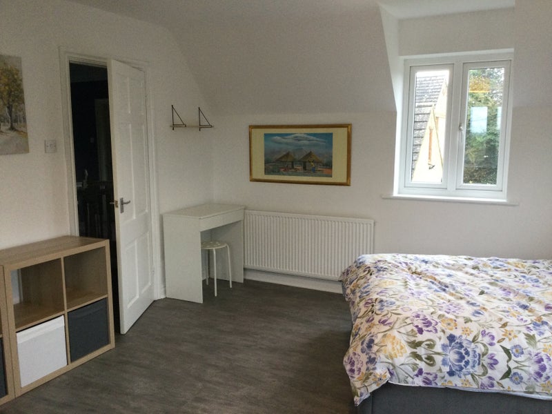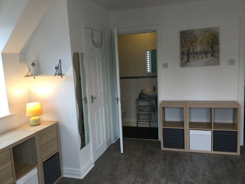 We are offering out a large double bedroom which is furnished and has a built-in wardrobe and an ensuite shower room. The main household is four bedroom detached with plenty of parking, lounge, dining room and large kitchen, plus a good sized garden. We do have two dogs, so you must be an animal lover.