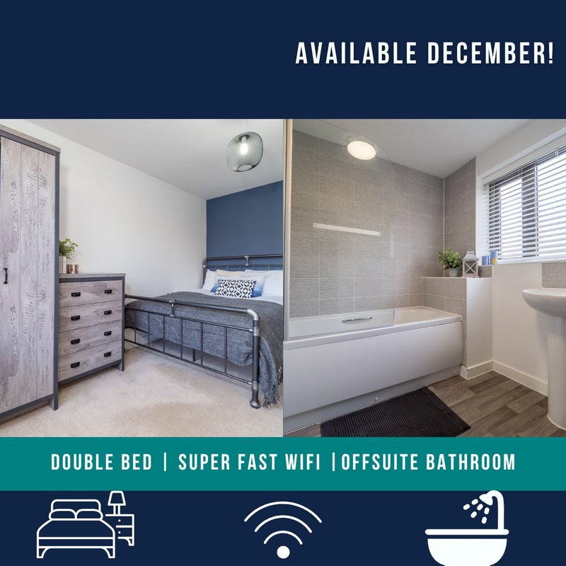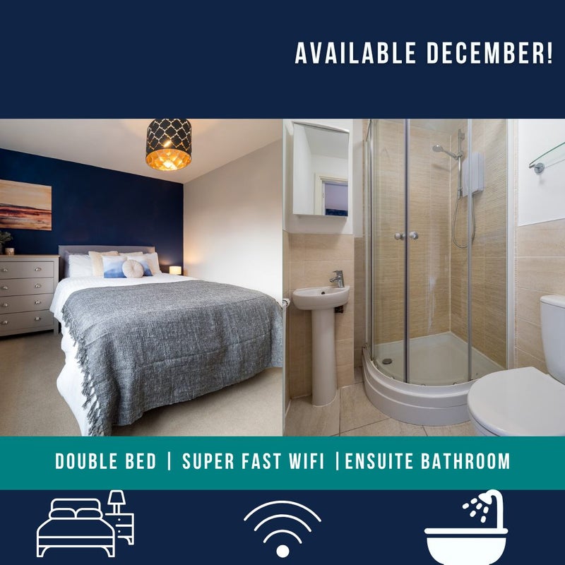 Room 1A: Oversized Double Bedroom (13sqm) with an ensuite bathroom - £710pcm. Available in December.