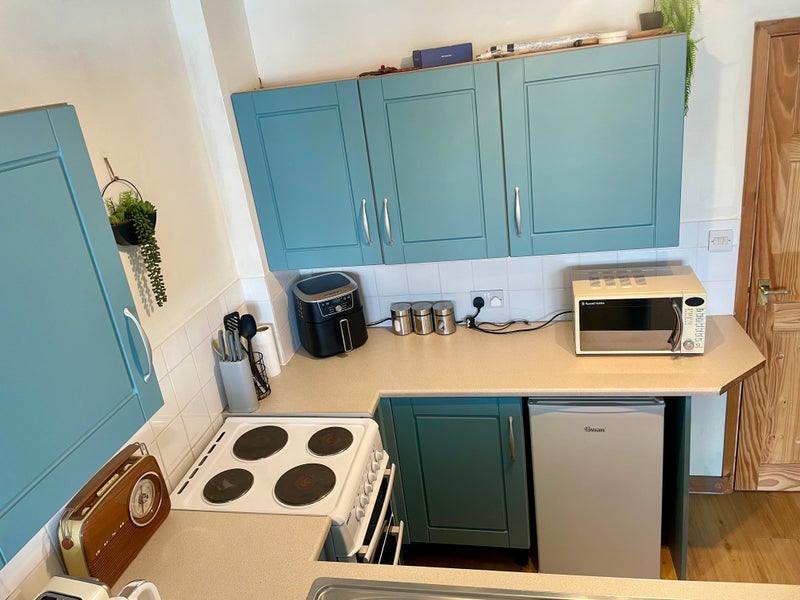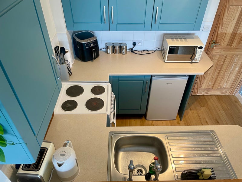 The annex is all on one level and offers a comfortable double bedroom, a well-equipped kitchen, and a spacious bathroom.