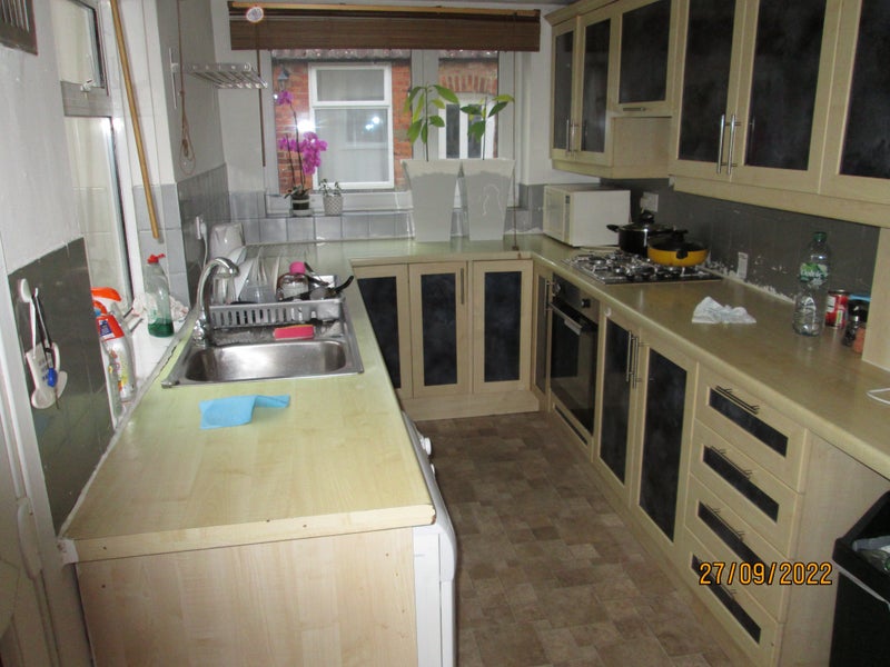 The bedroom has a chest of drawers, wardrobe, and a bedside table. There is a large fridge freezer in the room which is available for the successful applicant to use. (Alternatively it can be taken out of the room, if preferred).