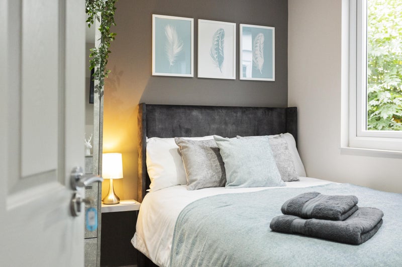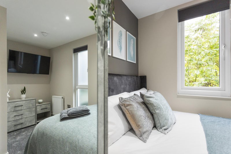 The room is a GREAT LARGE DOUBLE EN SUITE that comes FULLY FURNISHED with a double bed, orthopedic mattress, wardrobe, bedside table, set of drawers, desk and a free-view tv point and flatscreen smart TV provided.