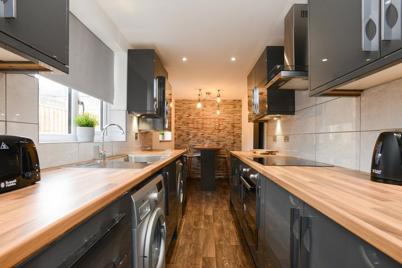 Brand new modern kitchen contains all appliances including 2 x fridge freezers, microwave, kettle, toaster, kitchen utensils, washing machine and tumble dryer. There is also a private rear garden perfect to chill out in the summer months. also included is the FASTEST broadband available! 350MB!!!!!