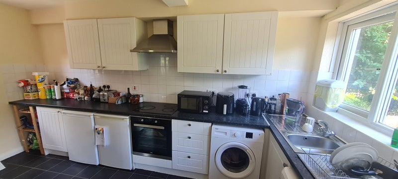 - Kitchen with induction hob/oven, washing machine, dishwasher, microwave, under counter fridge and freezer and other small appliances.