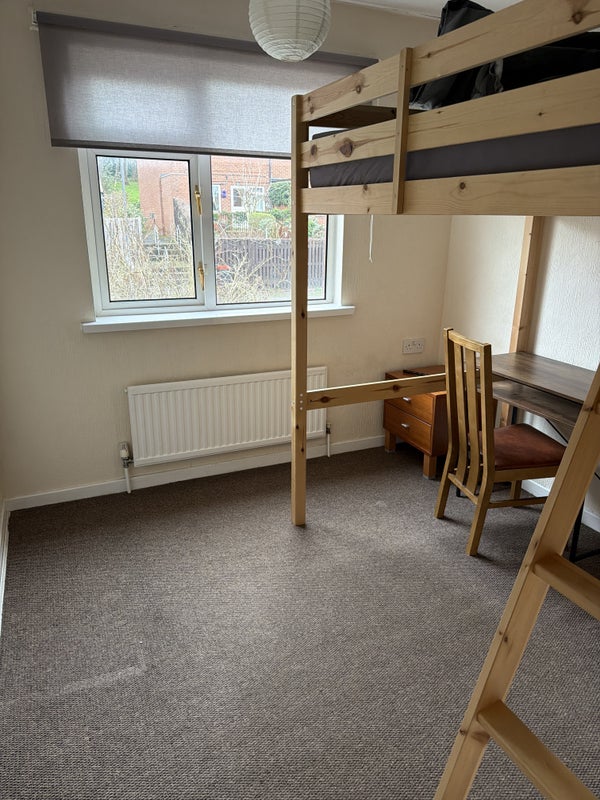 A bright and comfortable small double room available in a clean, well-maintained home. The room features a small double bunk bed, creating a spacious layout while keeping plenty of usable floor space.