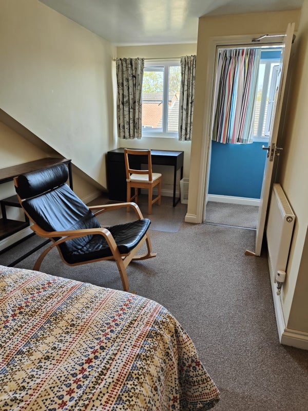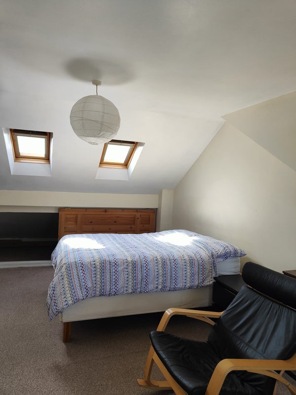 To let is a double room in this 4 bedroom house. A high quality mattress is provided on a bed with ample storage. There is a bathroom and a separate WC, and all mod cons provided, including dishwasher, washing machine, dryer, central heating, Freeview TV. Included in the price are ALL bills, meaning high speed Broadband, Gas, Electricity, TV licence, Council Tax and Water.