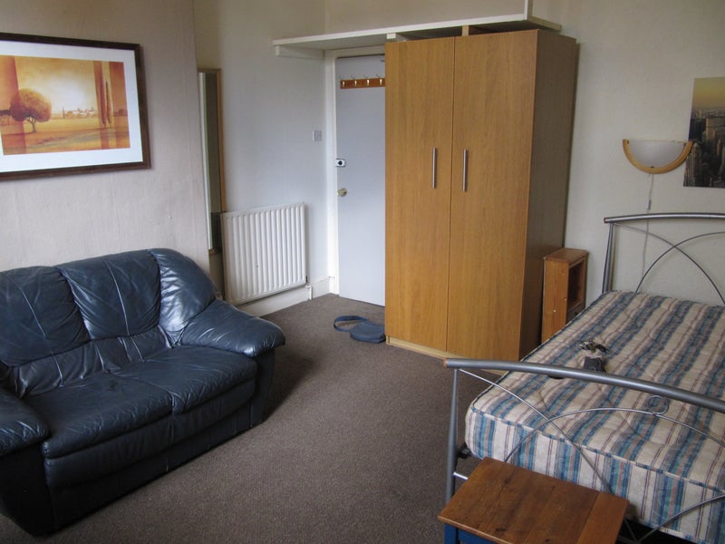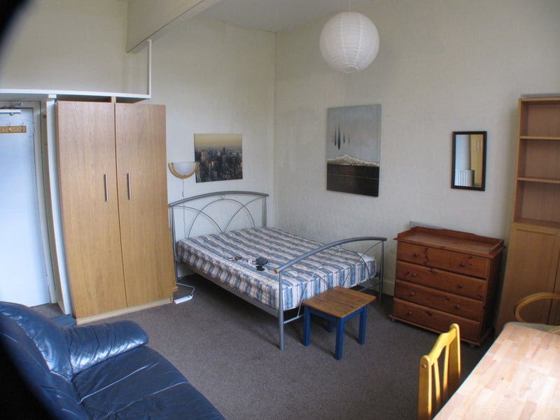 Room 2: Unusually large bedroom (4m x 4m or 13ft x13ft approx) Has double bed, leather sofa, big Pax ikea wardrobe, desk&chair and still enough floor space for eg exercise, High Ceiling allows giant 'loft' shelf for cases/ boxes. Two bathrooms available.