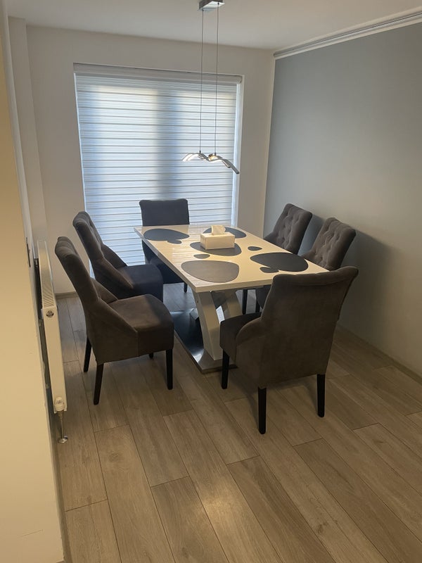 The house also has a sleek modern kitchen, a clean tiled bathroom, and a spacious shared living and dining area, so there is plenty of room to relax outside the bedroom too.