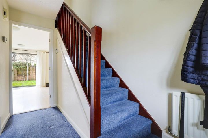 The first floor holds two double bedrooms with fitted wardrobes and serviced by a three piece bathroom suite.