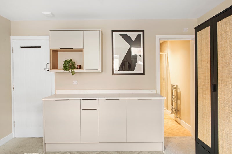 The room is fully furnished and thoughtfully set up for modern living featuring a large 32” smart TV. Tenants also have access to a sleek, fully equipped shared kitchen with brand new appliances and ample storage.