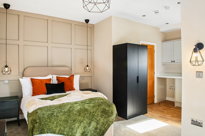 The property has been decorated throughout with stylish panelling, contemporary lighting fittings, and a high-end finish that sets it apart from standard shared accommodation.