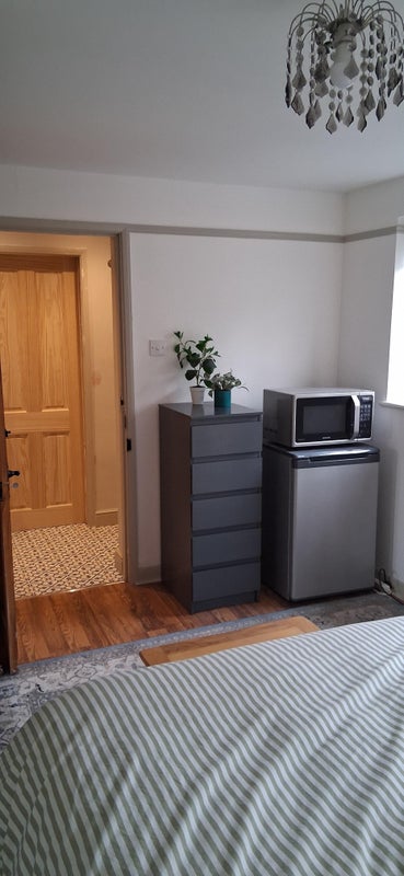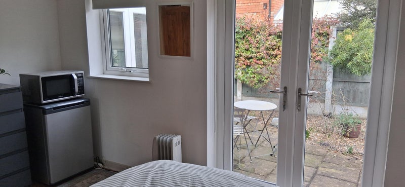 En suite room with own private access., overlooking garden. Off road parking for small car.