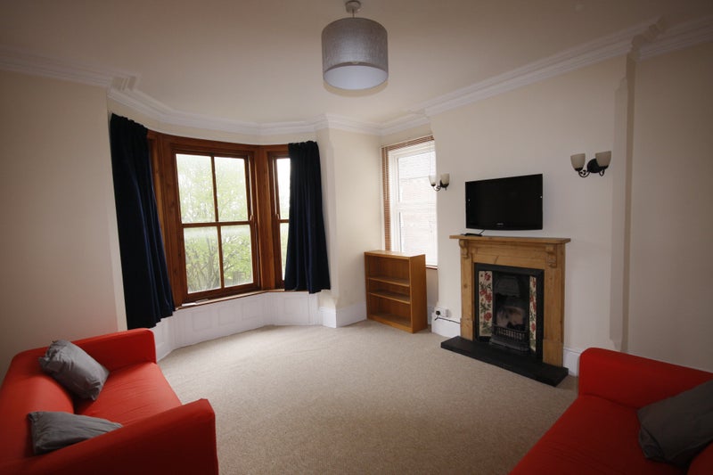 Room has double bed, full height wardrobe, desk, chair, chest of drawers, shelves, high ceilings nice and bright. Good sized room, with bay window and great views over the city as on 1st floor. Contents of the room are flexible (some want desks others bookshelves or chair - we can be flexible for your specific needs.