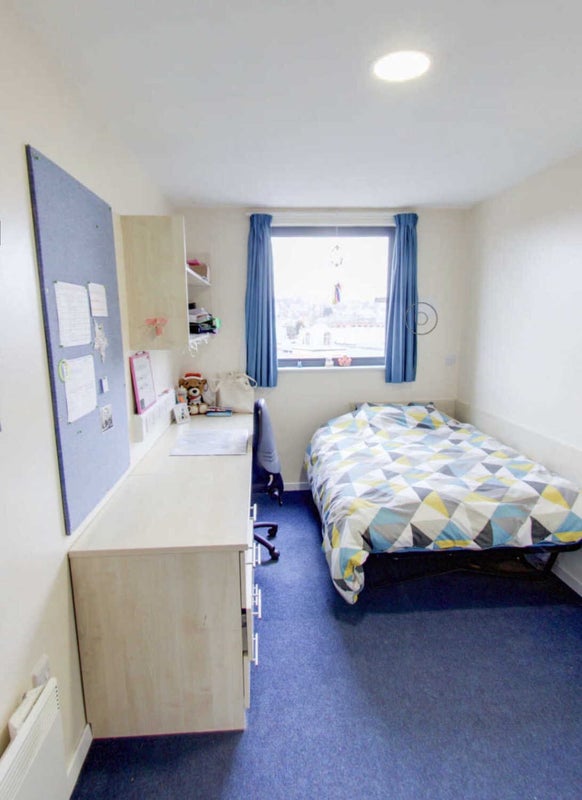 Spotless room in Trinity Square Accommodation with a very popular location approximately 5 minutes walking distance from Nottingham Trent University as well as being a 2 minute walk away from Victoria Centre. There's a 24/7 gym very close (approx. a minute away) so that's convenient. The room features a double bed, en-suite bathroom, study area and desk and a closet. There is a very spacious communal kitchen as well as a living area shared between flat mates. All bills are included as well as the very fast WiFi which anyone would enjoy.