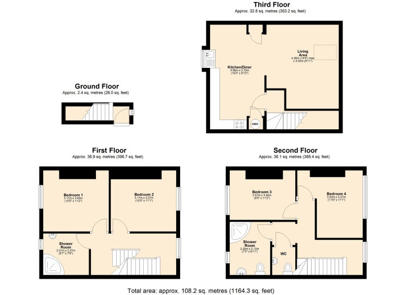 In addition to the kitchen / dining / living area, there are two shared shower rooms which each come with white suites including walk in showers, wash hand basin and WC.