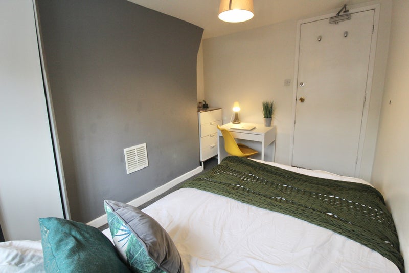 Available with BILLS INCLUDED, the room comes well furnished with a small double bed and mattress, wardrobe, drawers, desk and chair. The room has been well decorated throughout to include painted walls and carpeted flooring.