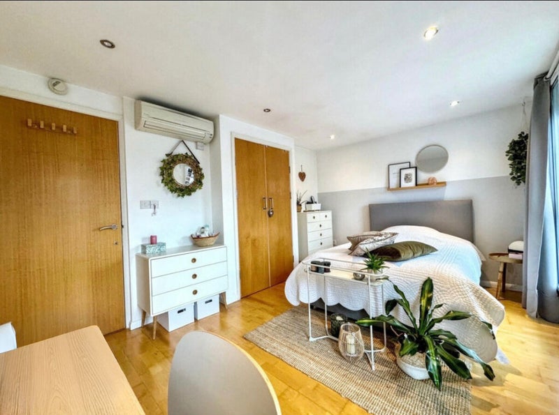 Hard flooring, two-part uPVC triple glazed floor to ceiling windows, Intu blinds, two electric heaters, built-in storage cupboard, air conditioning unit and an en-suite.