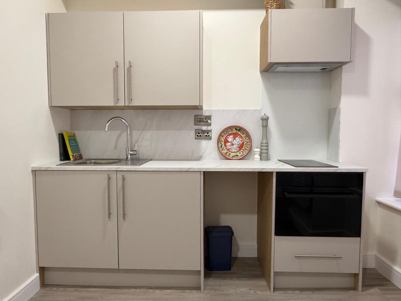 Each studio benefits from its own private, newly fitted en-suite, complete with a shower, WC, wash basin, heated towel radiator, and wall-mounted mirror.