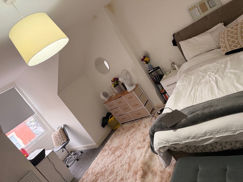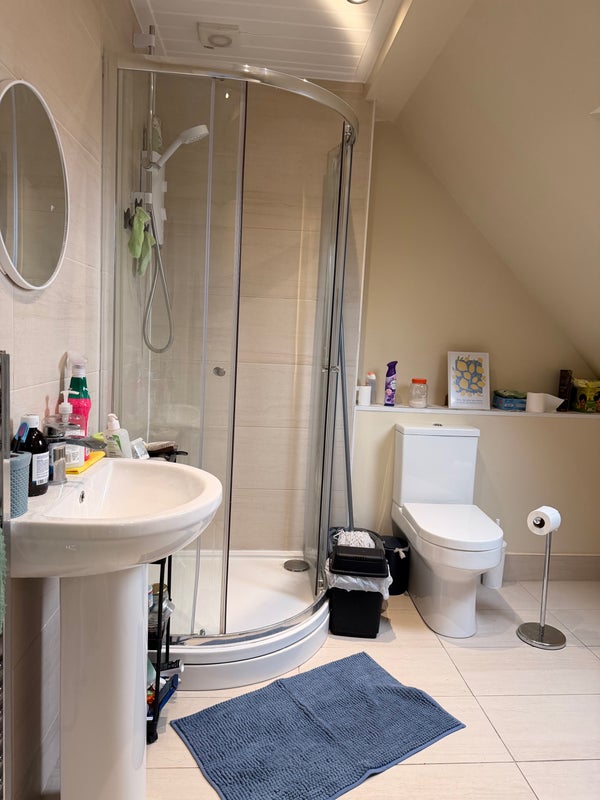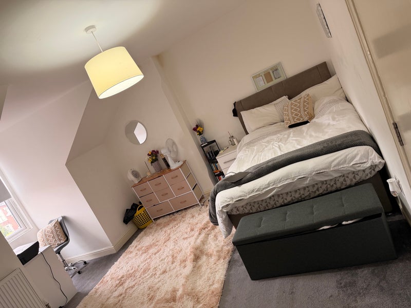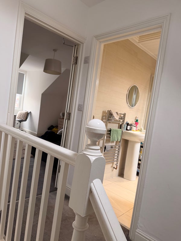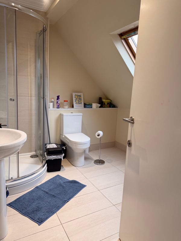 Room is very spacious. You have the Bathroom to yourself + Your own floor landing. Bathroom is also spacious.