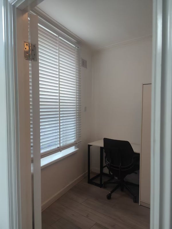 Fully furnished with bed, desk, chair, wardrobe and storage space.