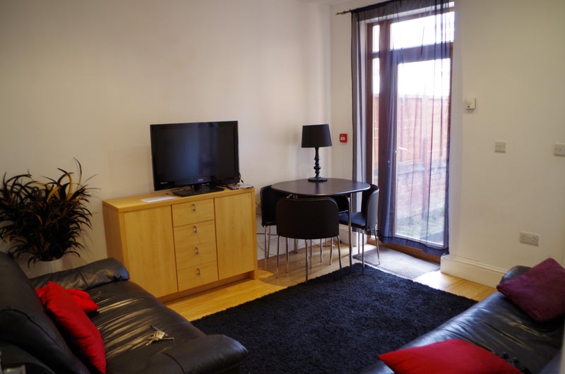 A good size lounge /2 leather sofas/dining table and chairs/32” LCD Freeview TV/ Virgin Broadband.
