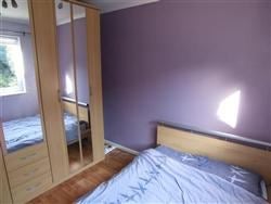 Range of fitted wardrobes, electric heater, laminate flooring and window to the front aspect.