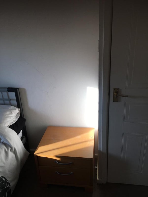 A double room, with bedside table and wardrobe available. Decent shower, there is a garden area. I live here but I work long hours and am out during office hours. Washing machine and normal kitchen facilities available. Wi Fi available and Sky TV in the shared living room. Call me or text me.