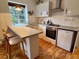 Breakfast bar with comfortable bar stools x 2