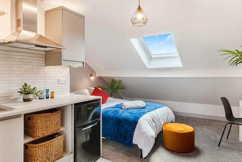The property also features a spacious shared kitchen and living area, ideal for socialising.