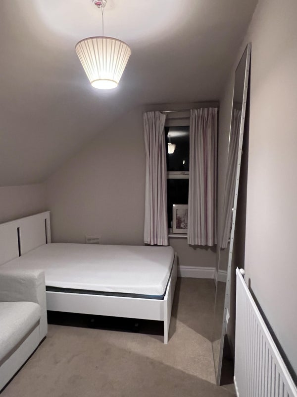 Room 1 - On the first floor of the property. A large double room (can also accommodate a king size bed easily) with a window facing the garden. Has a large sized wardrobe, mirror and chest of drawers. A lot more space available for a sofa and a desk. The room is on the same floor as the bathroom and is the largest in the property!