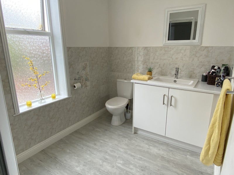 There is a downstairs bathroom to the rear of the property, hosting Bath, sink, Wc and shower above the bath.