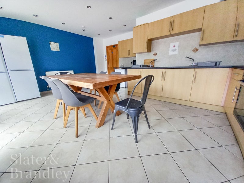 Room 111 comprises; a self-contained double bedroom furnished with bed, plasma television, wardrobe, set of drawers, desk and chair plus wet-room with thermostatic shower, WC, wash basin, chrome towel radiator and wall mirror. The room has access to a spacious fully fitted kitchen with secure fob access and comprising 2 x gas hobs, 2 x electric ovens, 3 x fridge freezers, dining table and chairs. Additionally there is a separate shared utility room to the ground floor with washing machines and drying machines.