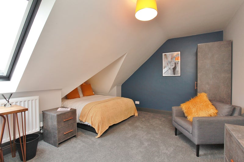 Room 5 is a second floor furnished King Size bedroom, with an en-suite shower room, recently decorated throughout and fully furnished, in this completely refurbished and renovated 5 bedroom en-suite town centre property with parking.