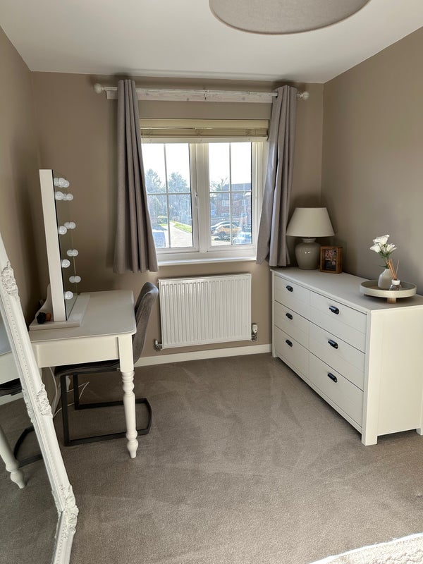 Large, furnished double room available with parking and garden. Pictures available upon request.