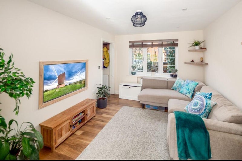Tastefully furnished lounge area with large TV and comfortable and large sofa. 500Mb broadband throughout the house.