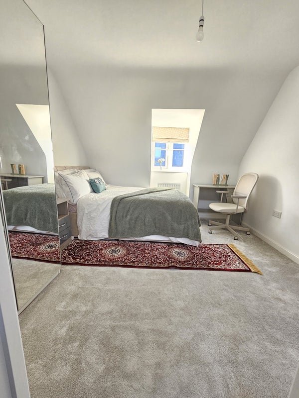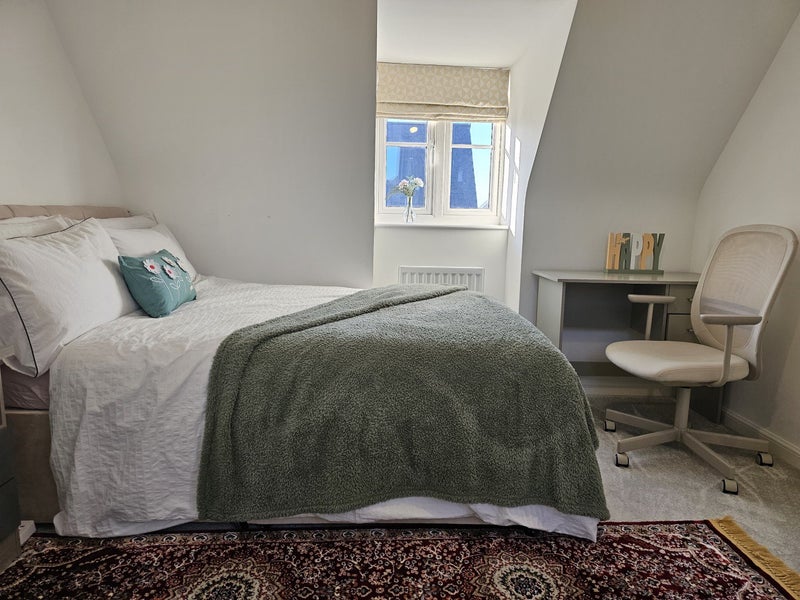 Lovely room with double bed with ensuite, huge wardrobe, desk and chair.