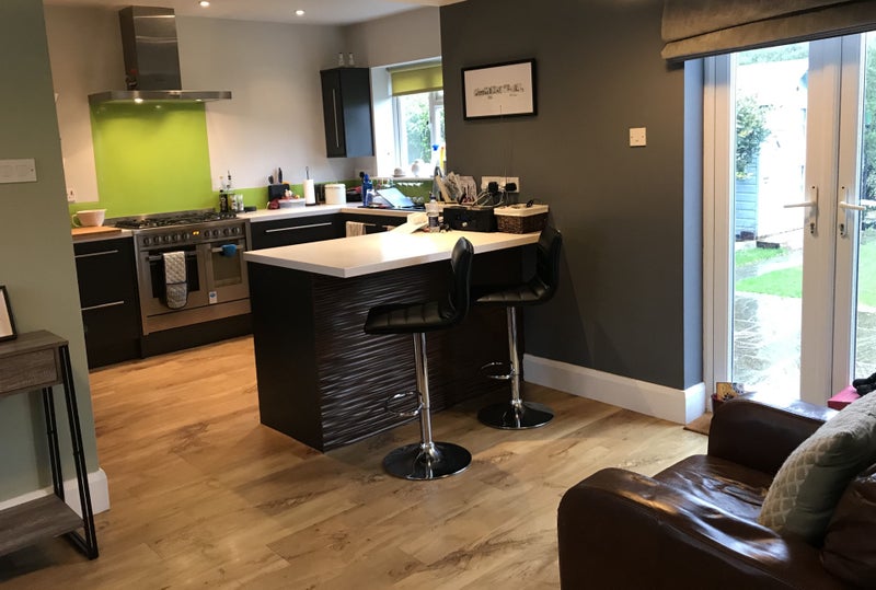 We have a tidy large modern home with an open plan kitchen, dining area and lounge. The utility houses the washing machine, tumble dryer and downstairs toilet. Outside there is a large sunny garden you are welcome to enjoy and a large drive offering off street parking.