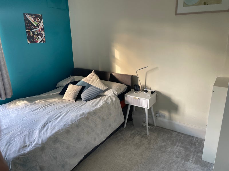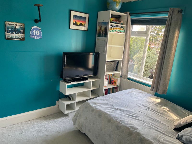 A fully furnished, lovely double room available to rent in a friendly, relaxed family home. The room has a comfortable double bed, wardrobe, drawers, shelves, bedside table, laundry bin, smart TV and wifi. There is one shared bathroom which includes a bath and separate shower. A separate toilet is downstairs.